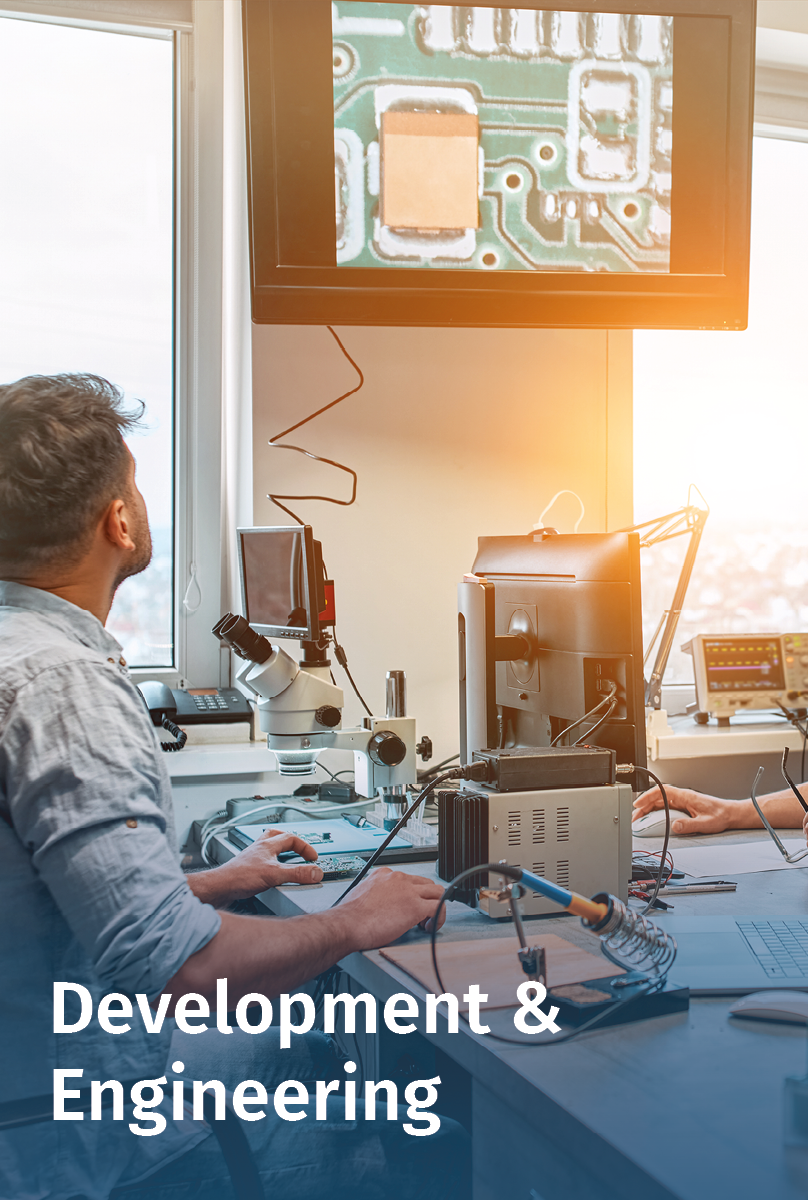 We develop intelligent software and powerful hardware components, and actively promote research and innovation projects. Our technical expertise, modern methods, and close cooperation with other departments enable us to create solutions that have a lasting impact on the marketsolutions that are reliable, future-oriented, and meet high quality standards.
